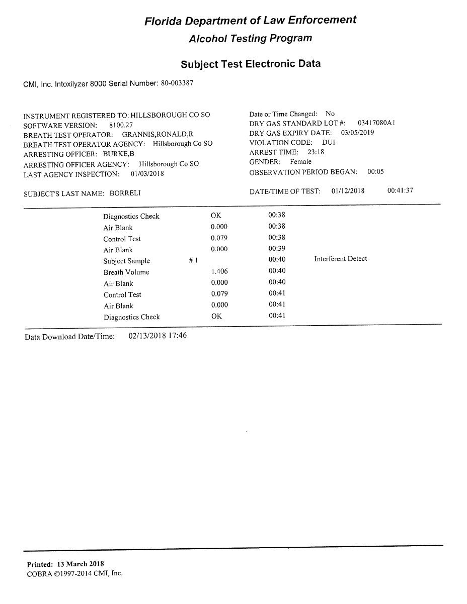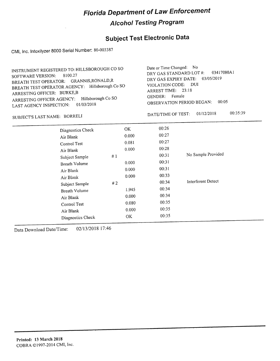 In these cases, the breath test operators are trained that when the breath test machine displays INTERFERENT DETECT, they must “abort the test, print INT* in the results section of the report, and print *INTERFERENT DETECT.”