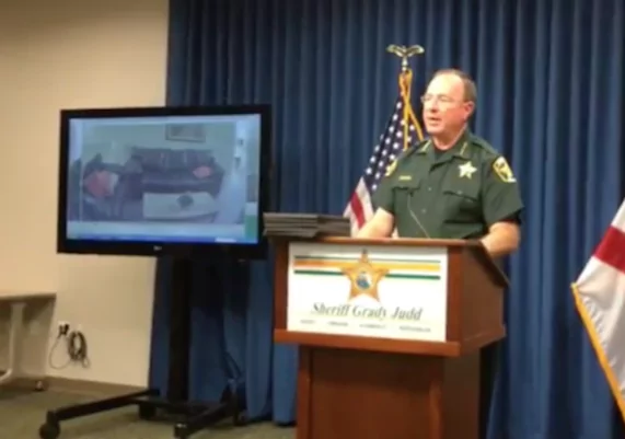 During the prostitution sting operation in Polk County, FL, the takedown officers are supposed to wear an agency-issued badge and a tactical vest with “Sheriff” on the front and back identifying the officer as a member of law enforcement.